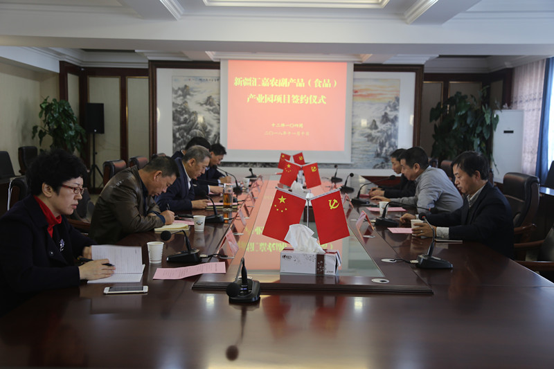 新疆匯嘉農(nóng)副產(chǎn)品(食品)產(chǎn)業(yè)園落戶一〇四團簽約儀式現(xiàn)場。