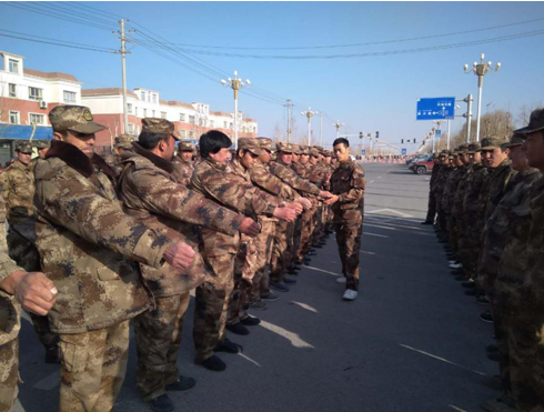 據(jù)悉,來(lái)自駐連“訪惠聚”工作隊(duì)隊(duì)員、連隊(duì)兩委成員和基干民兵、普通民兵共300多人著裝整齊、不畏嚴(yán)寒、刻苦訓(xùn)練。此次民兵大冬訓(xùn)內(nèi)容包含軍事訓(xùn)練、理論學(xué)習(xí)兩個(gè)版塊。理論學(xué)習(xí)主要包括習(xí)近平強(qiáng)軍思想和關(guān)于新疆和兵團(tuán)工作的重要講話和重要指示精神、自治區(qū)九屆六次全會(huì)精神、兵團(tuán)七屆四次全會(huì)精神等,軍事訓(xùn)練主要包括隊(duì)列訓(xùn)練和應(yīng)急處突演練。