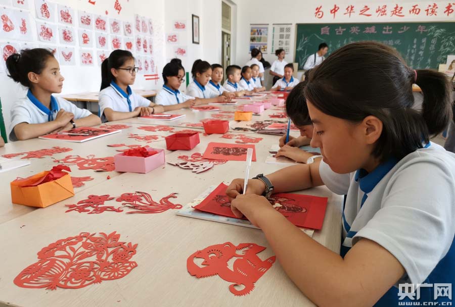 一堂生動(dòng)的剪紙課正在喀什市東城第三初級(jí)中學(xué)進(jìn)行 央廣網(wǎng)記者吳卓勝 攝
