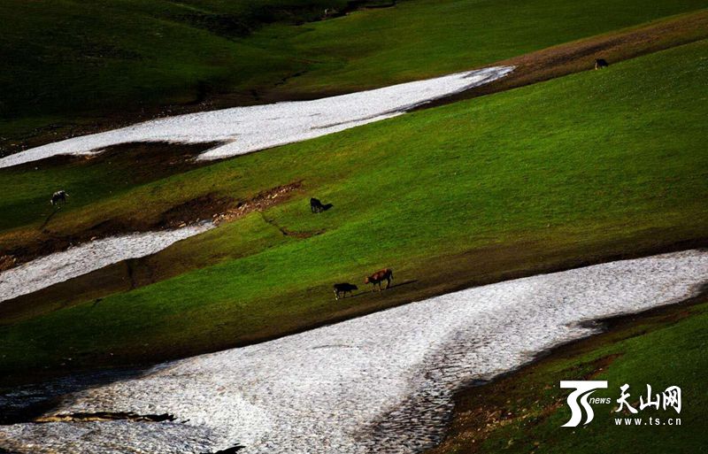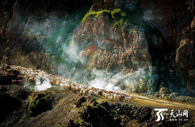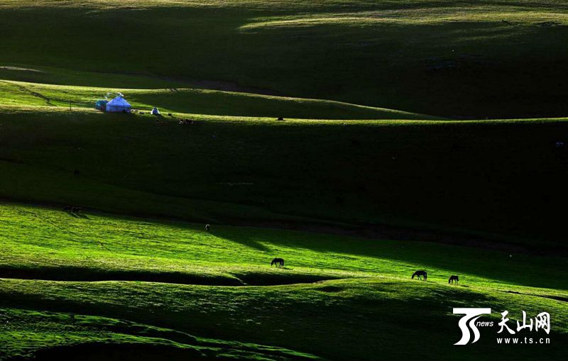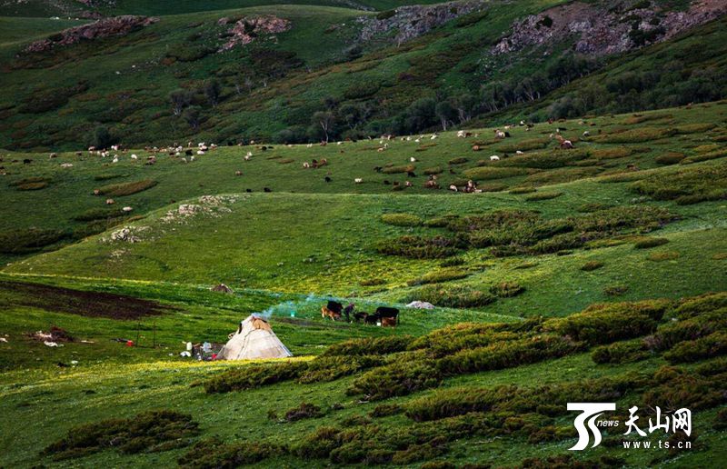 據(jù)悉,孟布拉克是平均海拔2300多米的高山草原。每到夏季云霧常在山間游走,令人感受到“手摸白云天,腳踏綠草地”的悠然之情,被稱為“云頂草原”。攝影愛好者孫明清說:“我最愛這里的山花,紅的、黃的、紫的、白的,不同的區(qū)域分布著不同顏色的花,聽說每種花花期不同,在山間次第開放,讓整個夏季都保持著美麗的顏色!