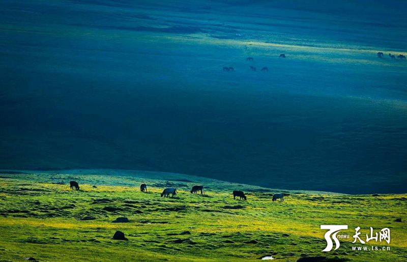 天山網(wǎng)訊(記者易雄文 通訊員張輝攝影報道)7月的塔城地區(qū)額敏縣孟布拉克草原迎來一年中最美的日子,原生態(tài)的草原、雪峰景觀吸引了大批攝影愛好者。