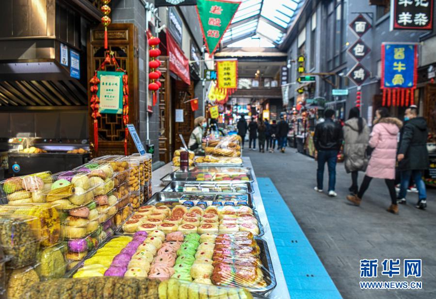11月26日,游客在烏魯木齊縣的閑來(lái)小鎮(zhèn)寬窄巷子美食街區(qū)內(nèi)觀光休閑。 新華社記者 王菲 攝