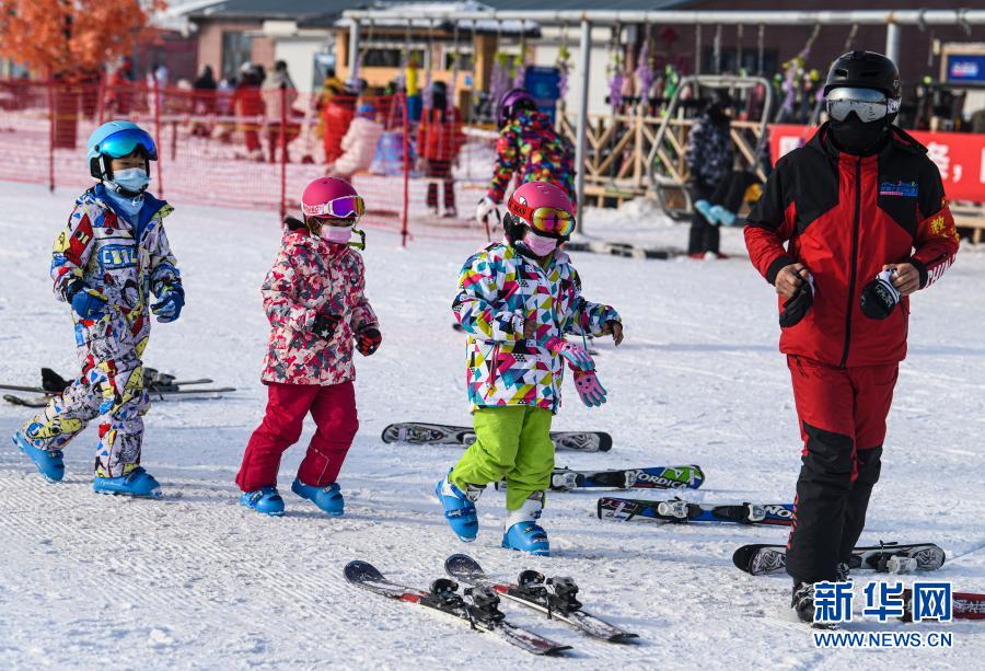 11月26日,在烏魯木齊縣的新疆絲綢之路國(guó)際度假區(qū),小朋友在教練的指導(dǎo)下學(xué)習(xí)滑雪。 新華社記者 王菲 攝