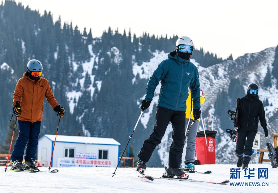 11月26日,滑雪愛(ài)好者在烏魯木齊縣的新疆絲綢之路國(guó)際度假區(qū)內(nèi)滑雪。 新華社記者 王菲 攝