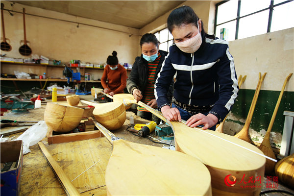 11月30日,走進坐落在庫車市阿拉哈格鎮(zhèn)的庫車蘇甫爾樂器廠,十幾名工人正在趕制一批來自烏魯木齊藝術(shù)學(xué)院的樂器訂單。
