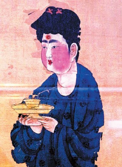 唐代托盞侍女圖,新疆維吾爾自治區(qū)博物館藏 胡 銳攝