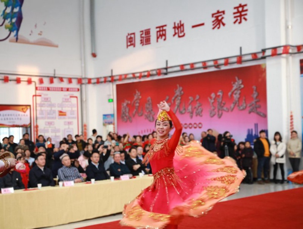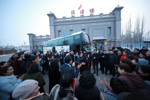 晚會上,為表達對即將返鄉(xiāng)的援疆干部的感激之情,村民們再度唱起閩南歌《愛拼才會贏》。現(xiàn)場,二十里店村民還為援疆干部送上了三面錦旗,“援疆幫扶辦實事 心系群眾解民憂”“無私援助暖民心 攜手共進留真情”“萬里援疆真情在 大愛奉獻閩昌情”。載著援疆干部的大巴車緩緩駛出村部,村民們揮淚送別,“再見,親人們,歡迎你們有機會再回到第二故鄉(xiāng)!”二十里店村黨支部書記、村委會主任艾爾肯·尼亞孜深情地說。(福建省援疆)