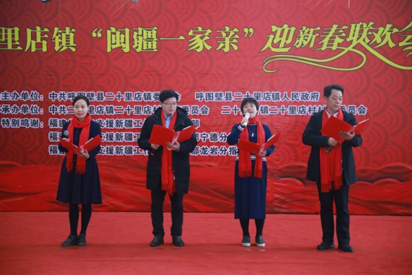 2019年的最后一天,皚皚白雪覆蓋靜謐的村莊,推開二十里店鄉(xiāng)村文化禮堂大門,熱鬧撲面而來。一場由鄉(xiāng)親們自發(fā)籌辦的新年晚會紅火開幕,參與者不僅有當(dāng)?shù)卮迕瘢有來自福建的援疆干部。