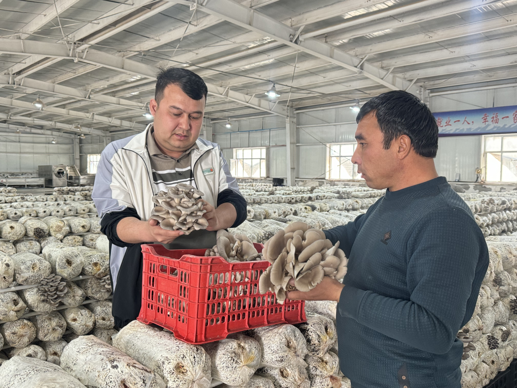 買買提艾力·阿不都熱西提說:“平菇培育對(duì)溫度和濕度要求極高,容不得半點(diǎn)馬虎。平菇最適宜在15℃至20℃的環(huán)境中生長,濕度需保持在85%至90%。我們每天早晚都要仔細(xì)檢查!