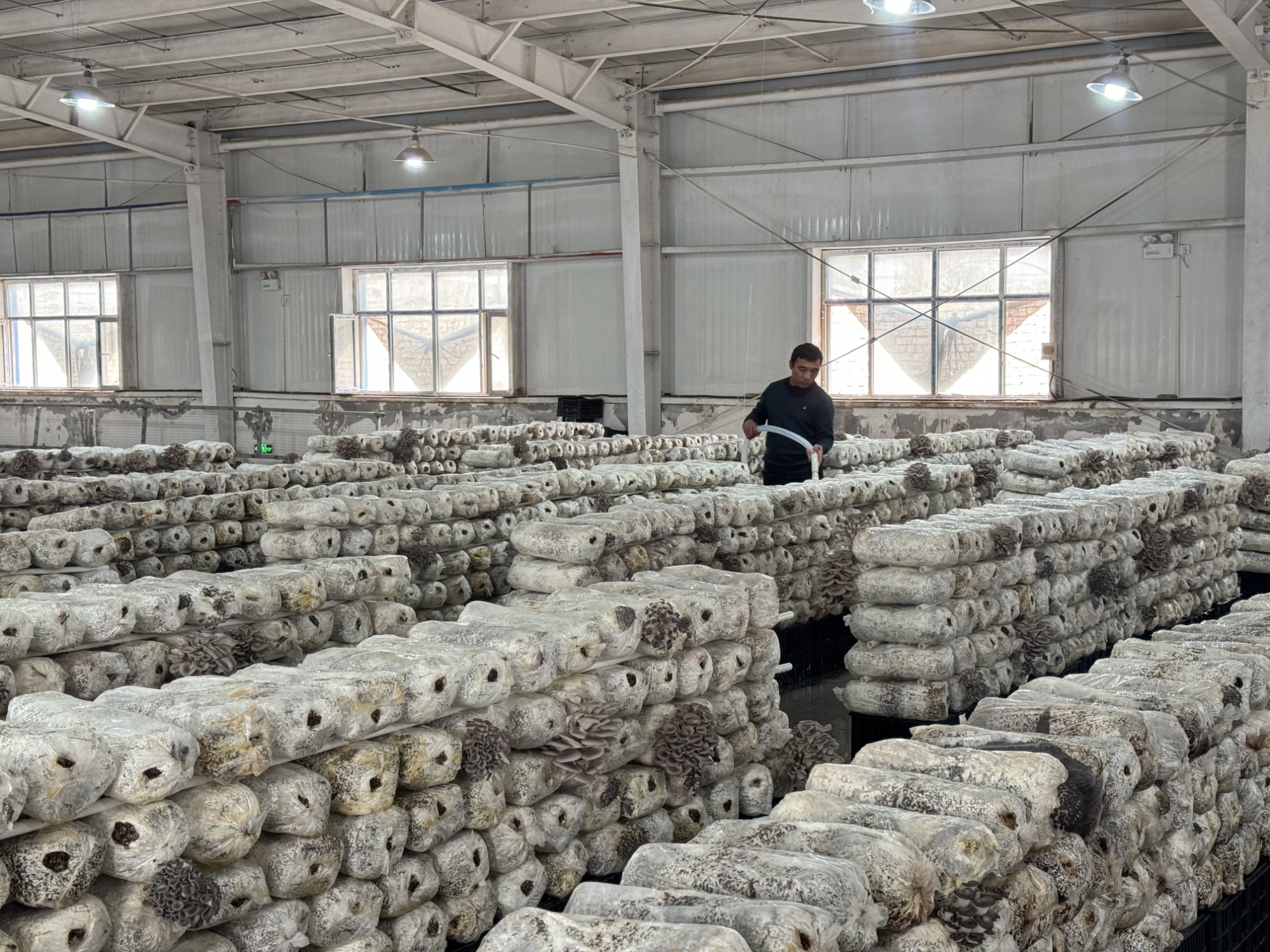種植戶正在管理平菇 (祖麗皮婭 攝)