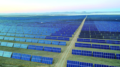 在夕陽的余暉中,記者乘車駛進扎旗音德爾鎮(zhèn)白音花嘎查光伏扶貧電站,延伸鋪開的光伏板閃耀著幽藍光澤,收獲著陽光的“饋贈”。10余萬塊光伏板在陽光的照射下,不斷將光能聚集,變成源源不斷的電能,點亮了千家萬戶的照明之燈,點亮了嘎查群眾的小康之路,也為扎旗工業(yè)發(fā)展注入了新動力。這里是內蒙古晟江農牧業(yè)發(fā)展有限公司建設的光伏扶貧電站,占地約3000畝,總投資3.8億元,由青海蒙圣澤公司與扎旗人民政府共同出資建設,每年可為扎旗2249戶無勞動能力的建檔立卡貧困戶每戶提供扶貧資金3000元,連續(xù)20年,是助力當?shù)孛撠毜囊豁椫匾菝窆こ獭?/p>