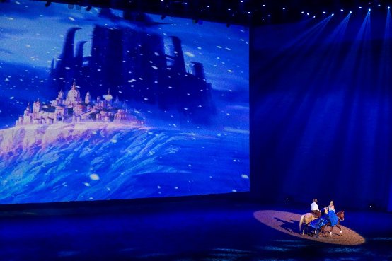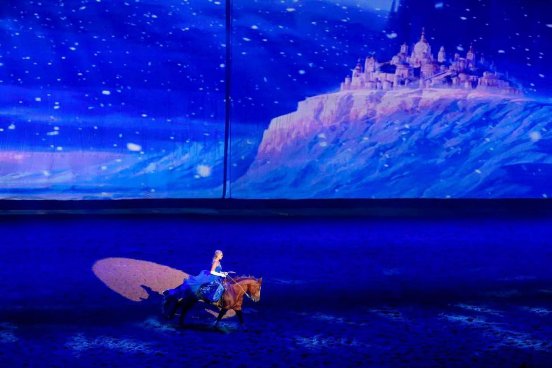 美國科羅拉多州的西部馬術(shù)雷寧“天才騎手”莎瑞·施瓦岑貝格受TOUCH國際馬術(shù)學(xué)院和主辦方的邀請(qǐng)用高超的騎乘技巧,唯美演繹了迪士尼著名動(dòng)畫電影《冰雪奇緣》,將雷寧的奔放、自由在馳騁中展現(xiàn)得淋漓盡致,伴隨著耳熟能詳?shù)谋尘耙魳,觀眾得以享受這場(chǎng)美妙的視聽盛宴。