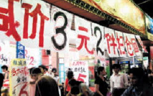 “清倉(cāng)大減價(jià),最后三天”——三天之后還有三天……“再次減價(jià)3元2件掃倉(cāng)回家”——恐怕這只是賣方的一廂情愿。買方市場(chǎng),賣方便以種種奇招攬買方;其實(shí)賣方盯住的,總是買方的錢包。 藍(lán)添藝 攝于鐘宅