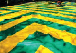8月12日,中山公園,鮮艷的雨篷平鋪在地,享受著雨后初晴柔和的陽光,極目望去,斑斕得令人迷醉。經(jīng)歷了前一天纏綿不休的風(fēng)雨,它歪了、殘了,工人們正抓緊整修,期待著下一次英勇上陣,擋風(fēng)阻雨。 常海軍 攝