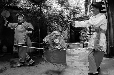 昨日上午,同安溪邊街40號院內(nèi)響起了車鼓聲,“車鼓公”和“車鼓婆”又開始了他們的演練。