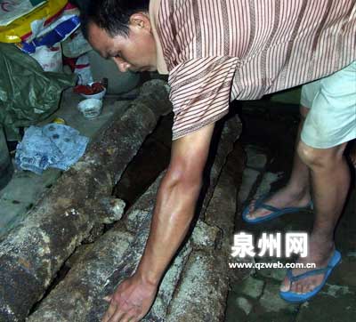 中廣網(wǎng)廈門8月30日消息 同安洪塘鎮(zhèn)石潯村村民郭春生翻建房屋挖地基時(shí),竟挖出六門古炮。同安文管部門表示,這些古炮極可能是鄭成功時(shí)期用于海邊防御工事的,但具體情況有待進(jìn)一步考證。前日,郭春生把這六門古炮捐給了同安區(qū)博物館。