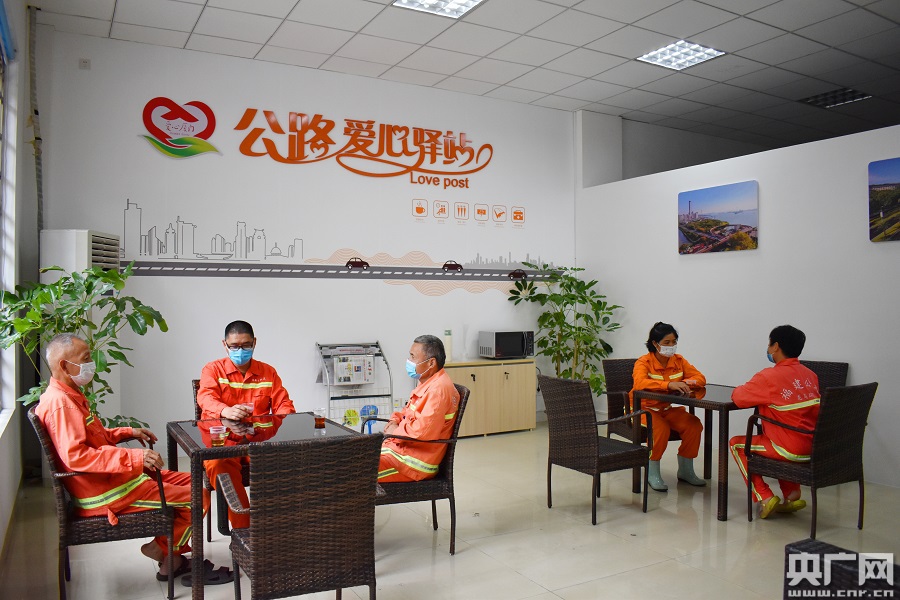 公路養(yǎng)護(hù)人員在廈門(mén)一處“交通一家親”愛(ài)心驛站休息(央廣網(wǎng)發(fā) 廈門(mén)市交通運(yùn)輸局供圖)