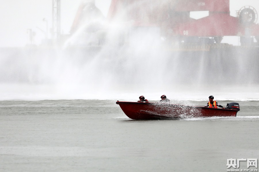 驍龍119號消防船在演練滅火作業(yè)(央廣網(wǎng)發(fā) 通訊員供圖)