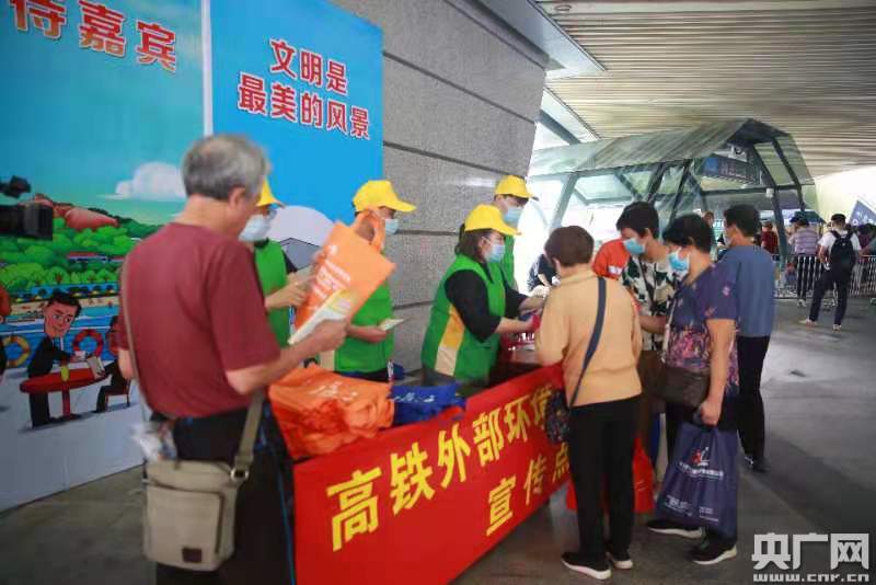 活動現(xiàn)場,鐵路部門工作人員通過發(fā)放宣傳單、購物袋及保溫杯,把高鐵外部環(huán)境安全知識送到廣大旅客和市民手中。