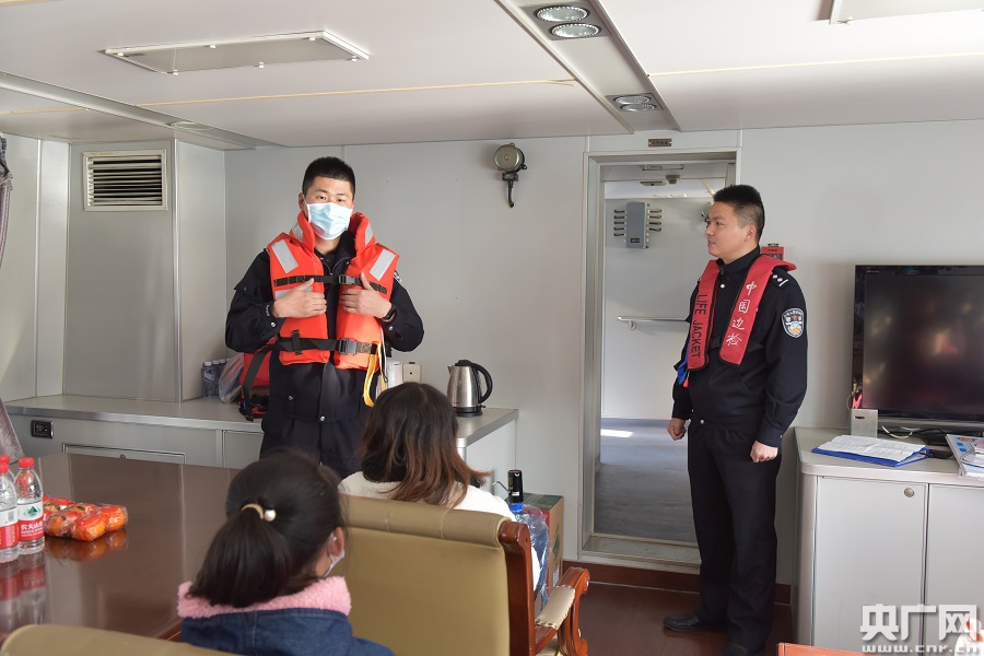 隨著轟鳴的汽笛聲,“中國邊檢-3567”巡查艇沿鷺江水道駛出。船艙外,云朗氣清、碧波蕩漾;船艙內(nèi),歡聲笑語、其樂融融。東渡邊檢站政委黃嵩致歡迎辭,對民警家屬和社會各界的關(guān)心和支持表示衷心感謝。大家依次參觀了巡查艇的駕駛室、會議室、生活區(qū)等區(qū)域,并觀看了講述東渡邊檢站執(zhí)勤一隊(duì)防抗“莫蘭蒂”臺風(fēng)事跡的紀(jì)錄片《怒海驚濤寫忠誠》,聆聽集體一等功背后的故事,零距離感受海港邊檢站的工作職責(zé)和特色。