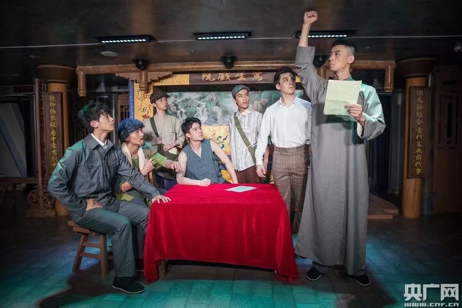 “我宣誓,為中國(guó)人民幸福奮斗終生!”廈門(mén)大學(xué)第一黨支部成立大會(huì)現(xiàn)場(chǎng),羅揚(yáng)才拍案而起,單手握拳,引得現(xiàn)場(chǎng)和聲;一曲探戈,劉惜芬身著旗袍,舞姿曼妙,與反動(dòng)軍頭目斗智斗勇;暴雨傾盆,雷電交加,少年攀塔而上,在黑夜里點(diǎn)亮光芒……百年前,在嘉興,一艘紅船讓革命理想揚(yáng)帆;百年后,廈門(mén)鷺江,紅色革命記憶在“圖強(qiáng)號(hào)”上再次起航。