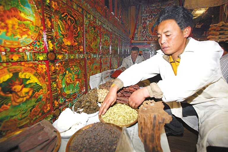 藏香具有悠久的歷史。藏香采用純天然、無(wú)污染的青藏高原特有的30余種藏草藥制成,而且還具有殺滅細(xì)菌、預(yù)防感冒、增強(qiáng)睡眠等獨(dú)特的功效。藏香對(duì)原料和制作工序要求也極為苛刻,包括選料、磨料、配料、攪拌、揉和、加工、晾曬、包裝等,全部由人工完成。