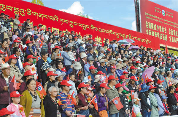 日喀則市群眾觀看精彩紛呈的文藝演出