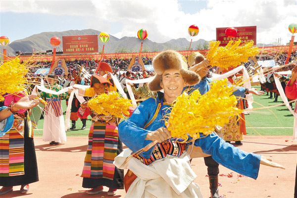 第十四屆珠峰文化旅游節(jié)開幕式演出——《美麗日喀則》大型草坪表演(日喀則報提供)