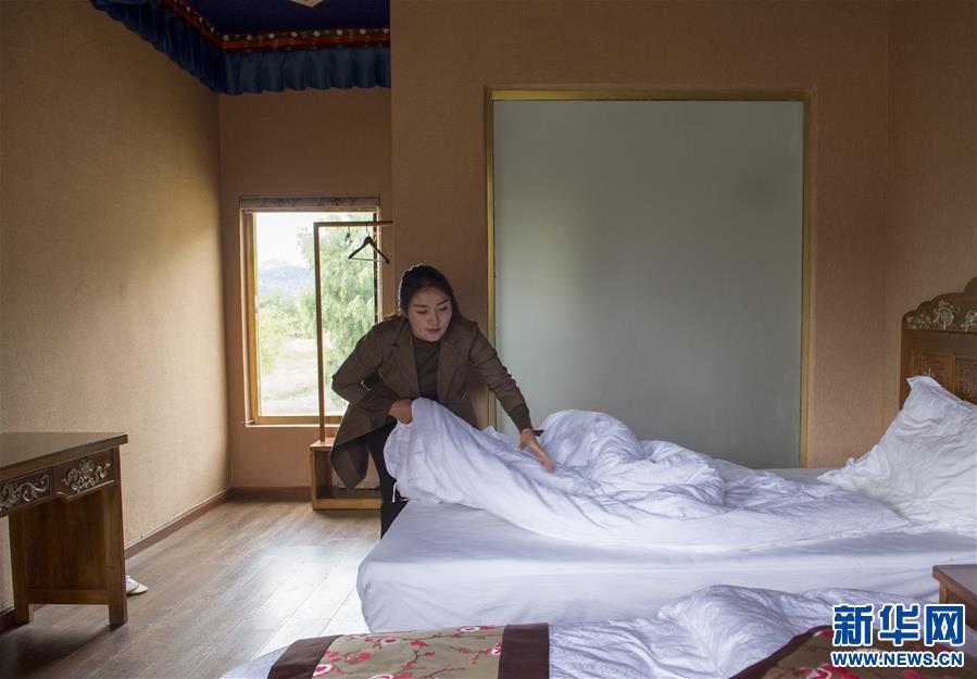公尊德姆農(nóng)莊創(chuàng)始人德吉旺姆在收拾客房(9月29日攝)。新華社記者 旦增尼瑪曲珠 攝 交通通,一通百通 “索松村的變化是米林縣的一個縮影。旅游業(yè)的發(fā)展改變了米林人民的生活。但旅游業(yè)的發(fā)展離不開基礎(chǔ)設(shè)施的完善,沒有便利的交通,游客怎么會來呢。如今的米林,交通通,一通百通!辈磐岈斦f。 基礎(chǔ)設(shè)施的不斷投入,是米林縣跨越式發(fā)展重要支撐。米林縣退休老干部平措回憶道:“1975年,我從部隊(duì)轉(zhuǎn)業(yè)到派鎮(zhèn)工作,當(dāng)時鄉(xiāng)鎮(zhèn)、村里別說公路,有些村里連土路都沒有。從派鎮(zhèn)到縣里開會要騎馬,走上兩三天才能到達(dá),路上不僅要帶著自己吃的干糧,還要帶上馬的草料! -