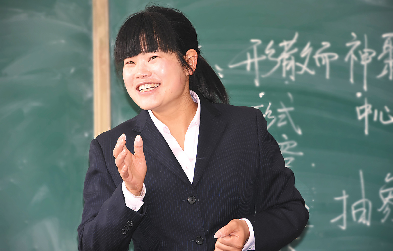 胥玉蓉老師利用課間休息時間,為高三(10)班的學生輔導漢語文作文。格桑倫珠 鹿麗娟 攝 -