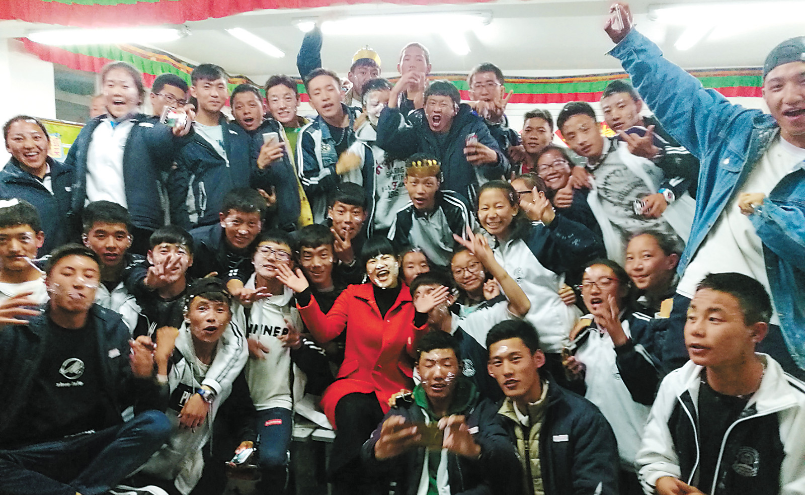 胥玉蓉老師和學生一起過生日。格桑倫珠 鹿麗娟 攝
