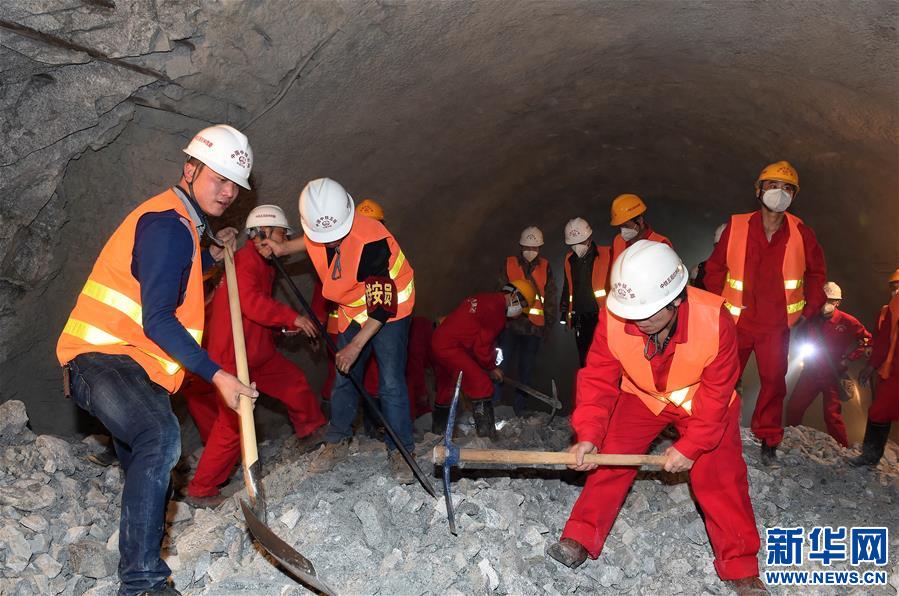 •      1月17日,施工人員在隧道貫通之后進(jìn)行清理。新華社記者 覺果 攝