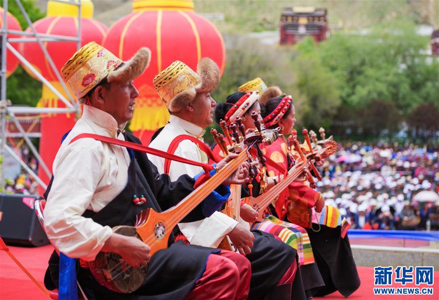 •      演員在西藏日喀則“民族團(tuán)結(jié)進(jìn)步日”文藝演出中彈奏扎木念(6月2日攝)。新華社記者 劉東君 攝