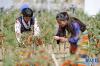 產(chǎn)業(yè)園員工邊巴普尺(左前)在采摘枸杞(9月5日攝)。新華社記者 張汝鋒 攝 -
