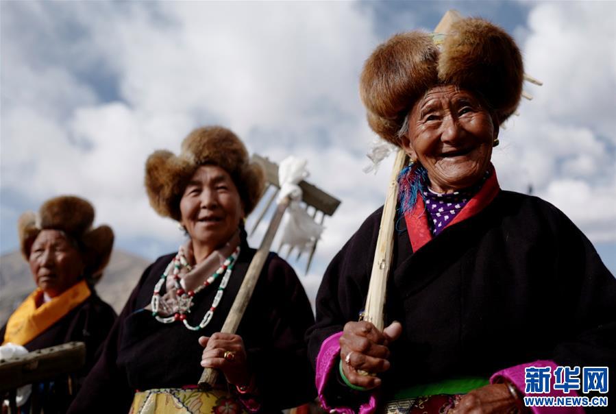 3月16日,拉薩市達(dá)孜區(qū)唐嘎鄉(xiāng)的農(nóng)民在開耕儀式上。新華社記者 張汝鋒 攝
