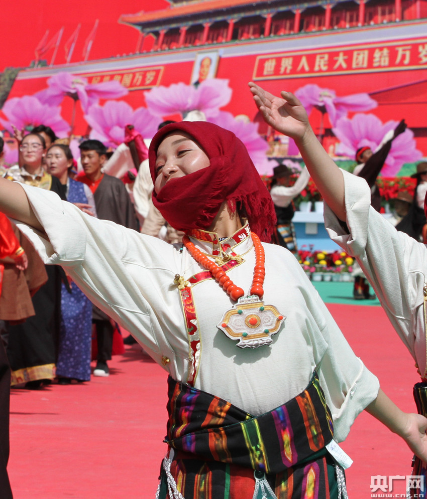 來西藏各地的群眾代表聚在一起,表達對祖國的摯愛與祝福。(央廣網(wǎng)記者 普布次仁 攝)