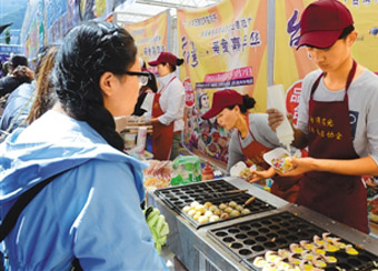 “這次有8家臺灣干貨客商參加藏博會產(chǎn)品展銷,還有17家臺灣夜市攤販業(yè)主帶著各色美食亮相藏博會餐飲街!迸_灣觀光夜市文化協(xié)會副會長柯宏騰介紹說,“在參加完拉薩雪頓節(jié)相關(guān)活動后,我們挑選了一些受歡迎的精品項(xiàng)目留下來繼續(xù)參加藏博會!