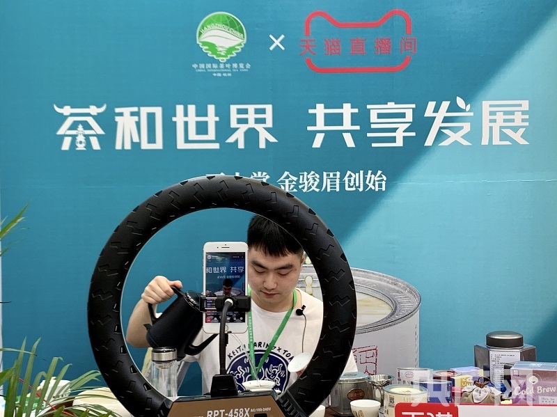 茶博會(huì)進(jìn)行直播銷售(總臺記者 李佳 攝)