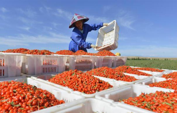 在中寧,枸杞加工流通企業(yè)有120家以上,從事枸杞產(chǎn)業(yè)人員達(dá)12萬人。近幾年,中寧建立起種、產(chǎn)、銷協(xié)同的產(chǎn)業(yè)體系,走上了一條有地方特色的綠色發(fā)展之路。