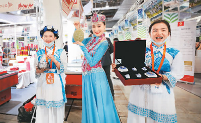 近日,全國消費促進月“老字號嘉年華”及第十五屆中華老字號博覽會在上海世博展覽館舉行,吸引12個省區(qū)市242家企業(yè)參加,402個老字號品牌集中亮相。圖為工作人員在博覽會現場展示各自企業(yè)的特色產品。新華社記者 方 喆攝