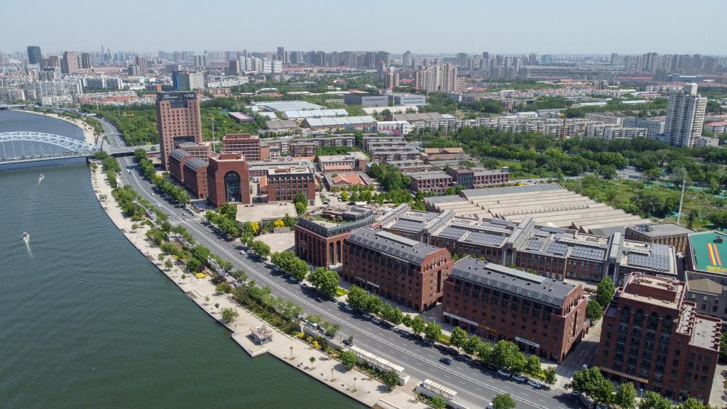 坐落于海河邊的天津棉3創(chuàng)意街區(qū)。(無人機照片,新華社記者孫凡越攝)