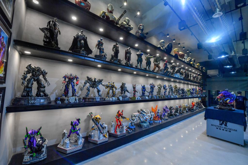 街區(qū)內(nèi),創(chuàng)立于2019年的神秘博物館登上了不少“潮玩”榜單。蜘蛛俠、阿凡達、變形金剛……走進館內(nèi),電影、電視劇中的人物“走出屏幕”,一件件精美的雕塑活靈活現(xiàn)。