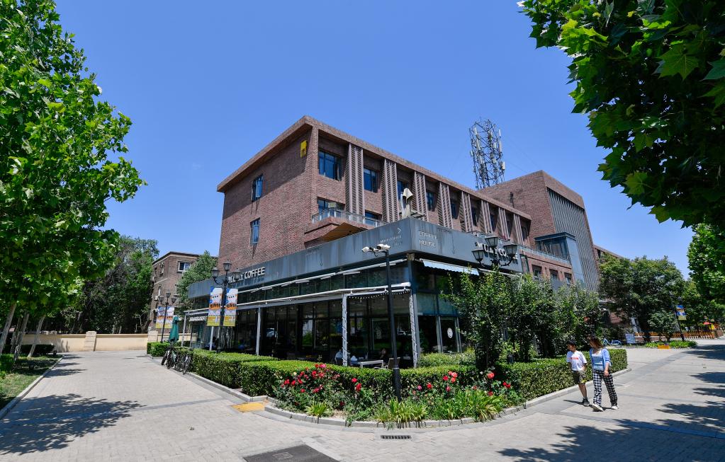 游客在天津棉3創(chuàng)意街區(qū)內(nèi)漫步。(新華社記者孫凡越攝)