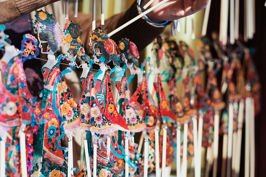 6月8日,走入位于成都市成華區(qū)望平街的冰人影戲,但見懸掛于墻的一幅幅皮影,色彩鮮艷、栩栩如生。這是一個(gè)小而美的空間,可以看皮影戲、體驗(yàn)皮影制作,個(gè)性化的定制服務(wù)也不少,如,個(gè)人專屬的皮影肖像畫、具有個(gè)人IP的皮影動(dòng)畫片……
