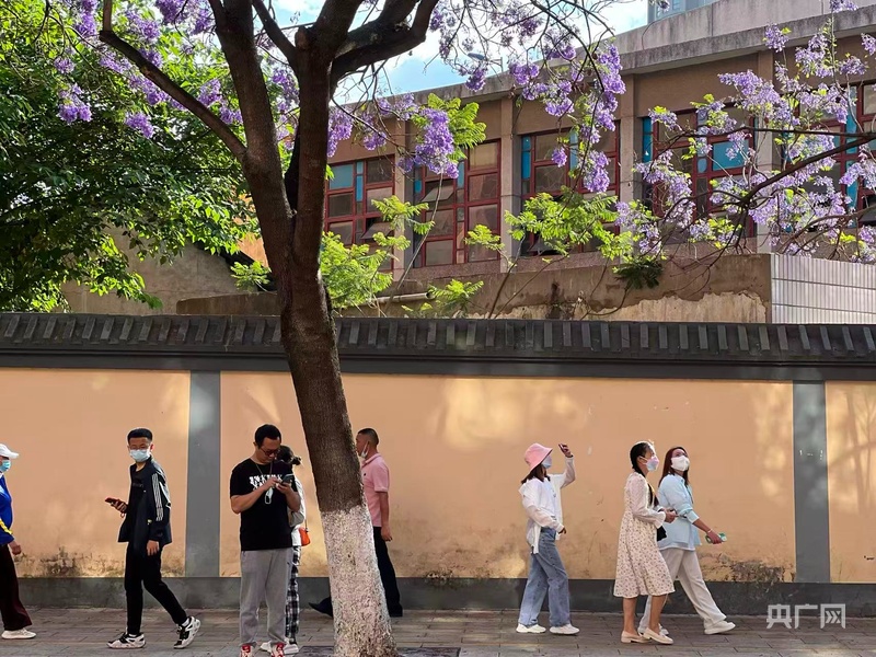 教場(chǎng)中路藍(lán)花楹(央廣網(wǎng)記者 魏文青 攝)