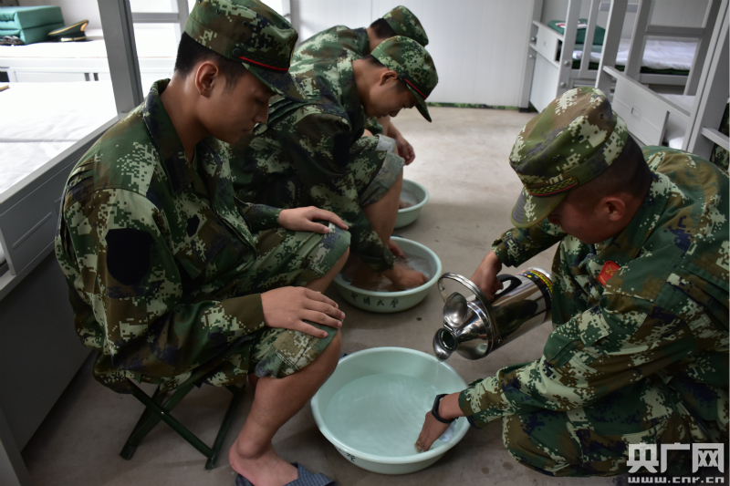 (為剛?cè)霠I的新兵兌洗腳水)