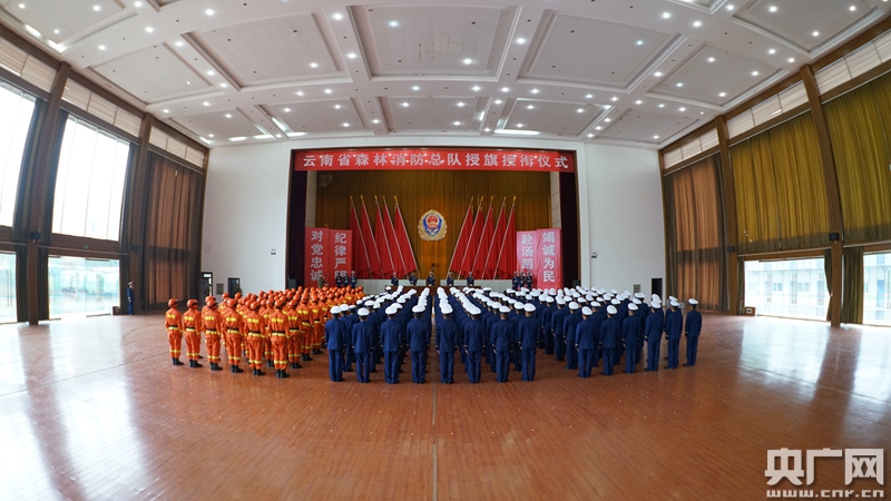 云南省森林消防總隊授旗授銜會議全景。邢智鑫