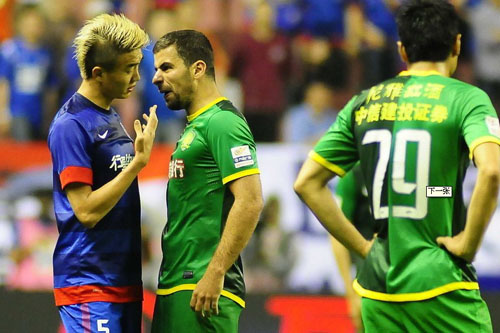 北京時(shí)間5月26日晚,2013賽季中超聯(lián)賽在第11輪迎來首場(chǎng)京滬大戰(zhàn),上海申花坐鎮(zhèn)主場(chǎng)虹口足球場(chǎng)迎戰(zhàn)北京國(guó)安。比賽補(bǔ)時(shí)第3分鐘,戴琳與利馬出現(xiàn)沖突,利馬領(lǐng)到第2張黃牌被罰下。