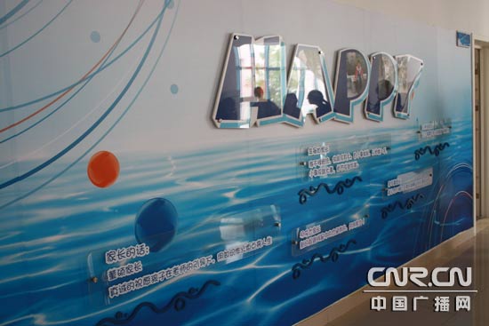 以水作為背景的墻體上掛滿(mǎn)了家長(zhǎng)對(duì)孩子最真、最美的祝愿。(中廣網(wǎng)記者李玲燕 攝)