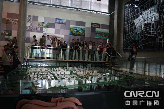 全國(guó)網(wǎng)媒記者參觀 滄浪新城規(guī)劃展示館沙盤模型。(中廣網(wǎng)記者李玲燕 攝)